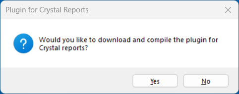 You can trigger the download and compile process also using the button “Download and Compile Plugin for Crystal Reports” in the right part of the screen.